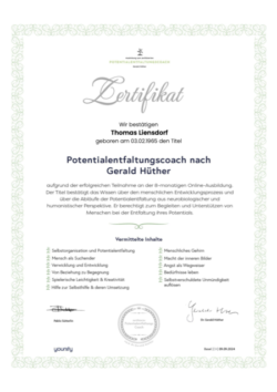 Als zertifizierter Potenzialentfaltungscoach nach Gerald Hüther, Mitglied der Akademie für Potentialentfaltung e.g.G. und Lernender bei Homodea begleite ich Menschen auf ihrem Weg zu mehr Selbstbewusstsein, Klarheit und innerer Stärke.